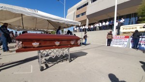 El acto de protesta se llevó a cabo en la explanada de los Tres Poderes del Centro Cívico de Mexicali, a donde también acudieron familiares de policías muertos en cumplimiento de su deber o por COVID19.