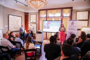 NUEVA YORK, ESTADOS UNIDOS.- Inversionistas y especialistas de diversas partes del mundo analizaron las oportunidades que ofrece Baja California para instalar y ampliar cadenas productivas a través de la información presentada por la gobernadora del Estado, Marina del Pilar Avila Olmeda, durante una reunión en la Cámara de Comercio México-Estados Unidos en la ciudad de Nueva York.